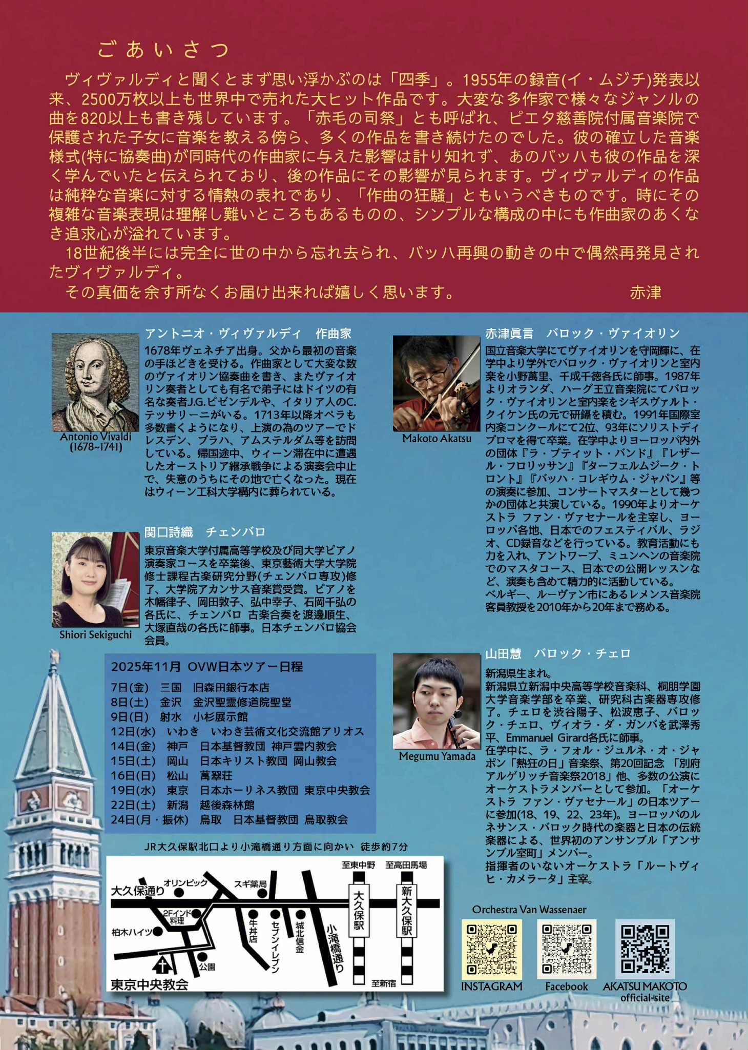 ※大久保には東京中央教会」が他にもありますのでご注意ください。出演 オーケストラ ファン・ヴァセナール